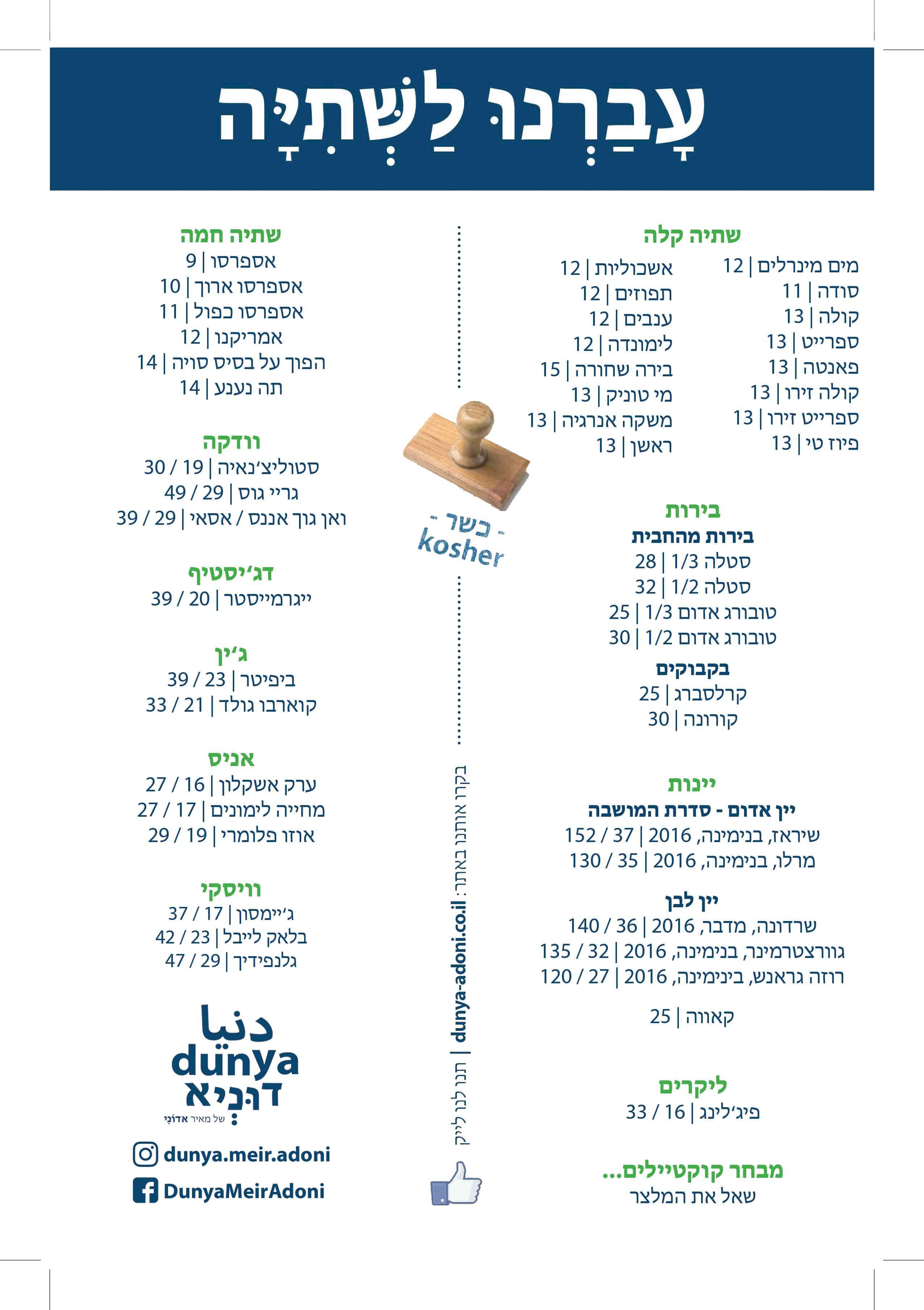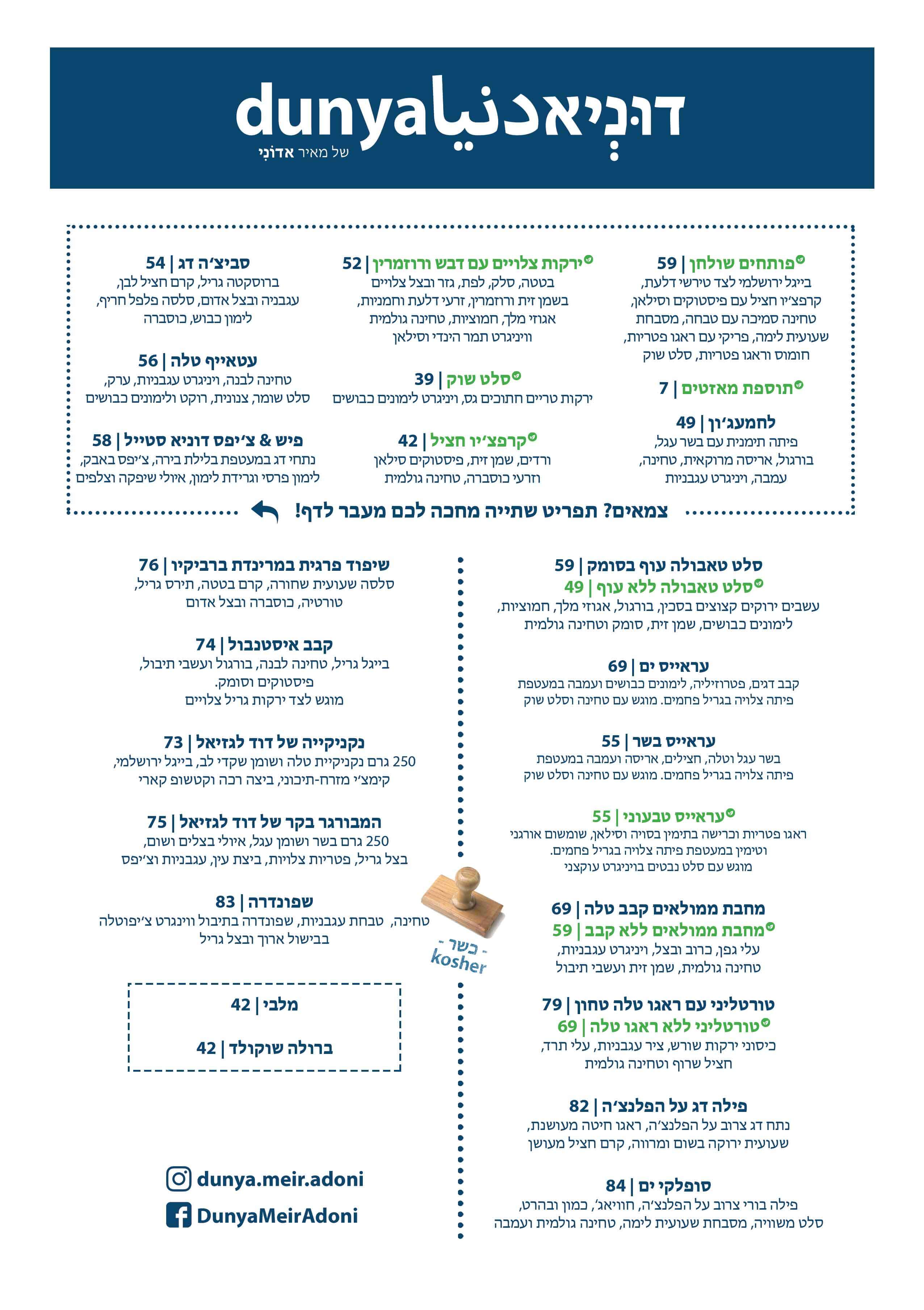 דוניא עזריאלי TLV - תפריט
